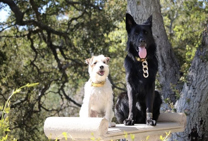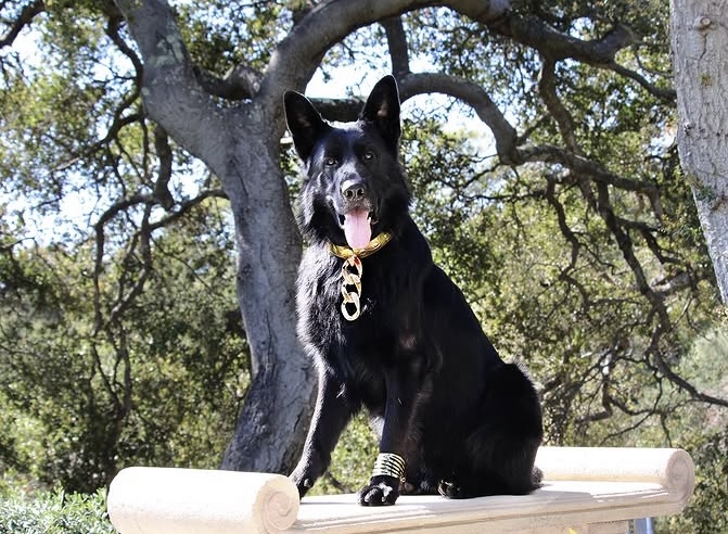 Stunning Fursace Doggess Gold Chain Collar, as seen in DOGUE issue 22, on Rufus Johnson!