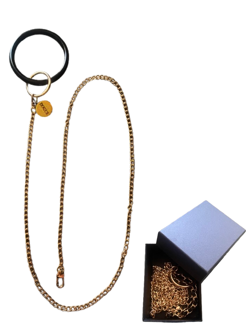 The Golden Lead is a statement piece for the discerning pup. Crafted with a sleek chain design, and ring handle, and finished with our signature DOGUE logo charm, this leash exudes chic sophistication. Designed for special occasions, not everyday use, and best suited for small pets under 10 lbs—or larger dogs who walk with grace, not pull with force.