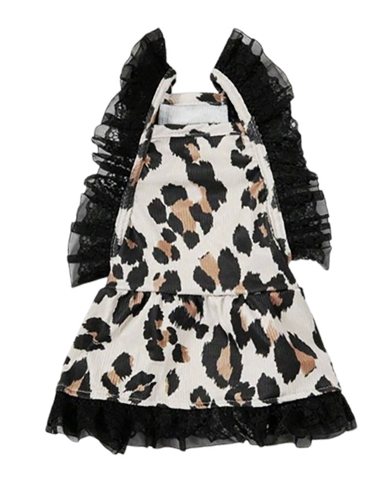 Leo Mesh Dress features classic leo print with lace and ruffles.