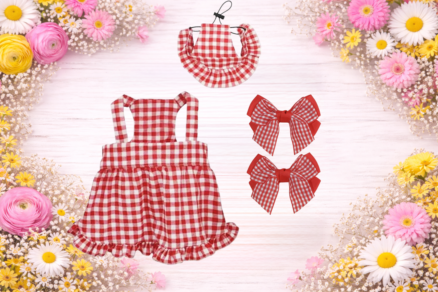 A sweet seasonal statement, this spring-ready dress with matching hat set blends timeless charm with playful elegance. Delicate details bring a touch of refinement, while the airy fabric keeps things comfortable and breezy. Pair it with Daisy Clips for a fresh, stylish look that adds a soft pop of springtime charm.