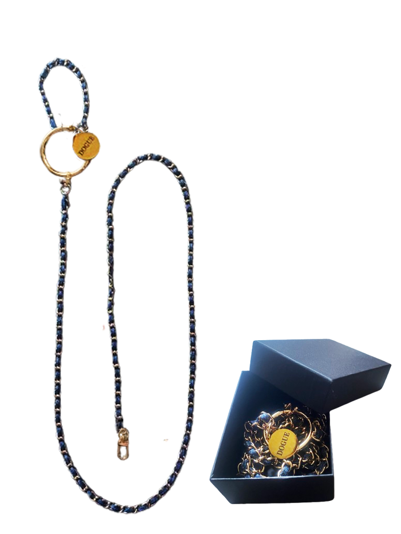 The Denim Lead is a statement piece for the discerning pup. Crafted with a sleek denim-chain design, and finished with our signature DOGUE logo charm, this leash exudes sophistication. Designed for special occasions, not everyday use, and best suited for small pets under 10 lbs—or larger dogs who walk with grace, not pull with force.
